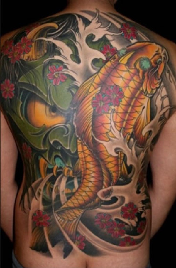 鲤鱼加龙头、般若组合图案彩绘纹身鲤鱼加般若_般若纹身图案大全_纹身图吧