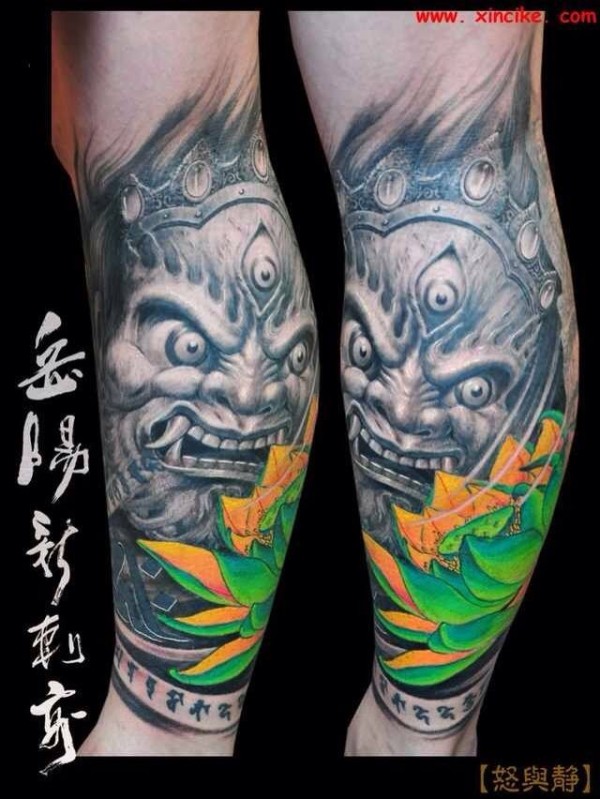 男人腿部时尚霸气的一款般若纹身图案_般若纹身图案大全_纹身图吧