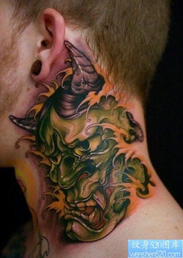 一款脖子彩色般若纹身图案_般若纹身图案大全_纹身图吧