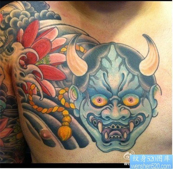 男人后肩背超酷的盔甲般若纹身图案_般若纹身图案大全_纹身图吧