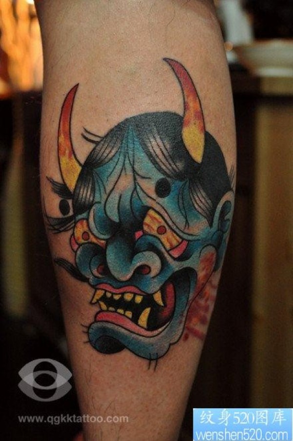 男人腿部时尚霸气的一款般若纹身图案_般若纹身图案大全_纹身图吧