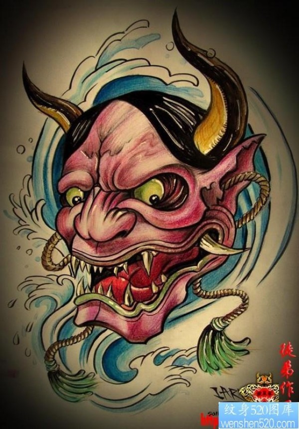 手臂一款经典很酷的欧美彩色般若纹身图案_般若纹身图案大全_纹身图吧