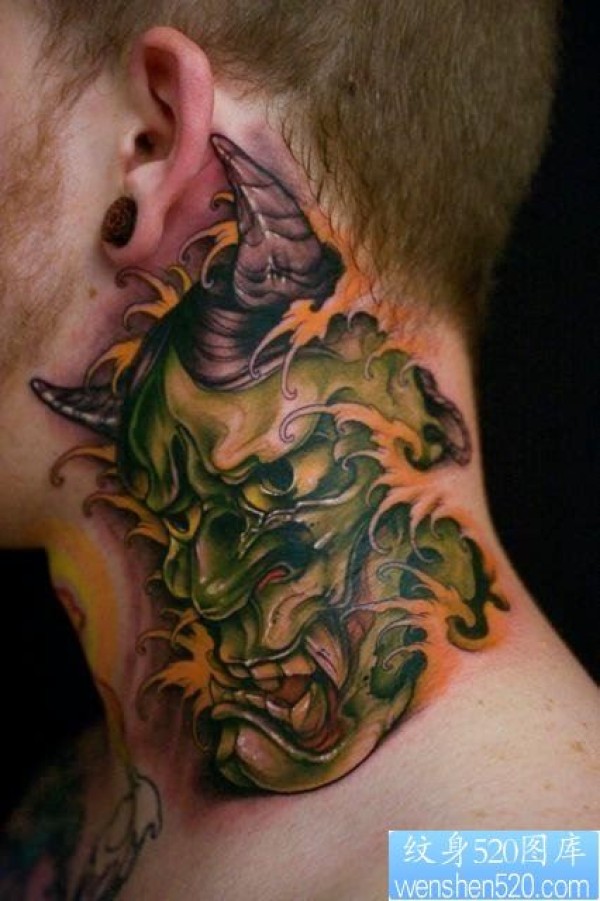 一款脖子彩色传统般若纹身图案_般若纹身图案大全_纹身图吧
