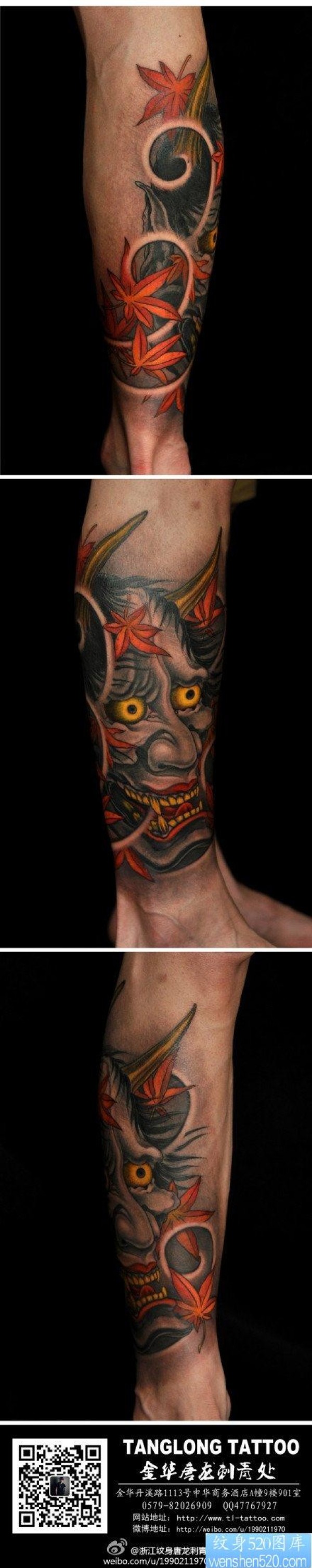 男生腿部霸气潮流的般若纹身图片_般若纹身图案大全_纹身图吧