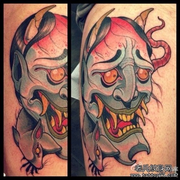 腿部帅气潮流的彩色般若纹身图案_般若纹身图案大全_纹身图吧