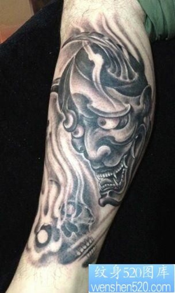 男人腿部经典帅气的黑灰般若纹身图案_般若纹身图案大全_纹身图吧