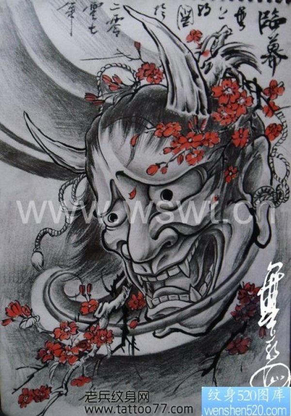 黑灰般若樱花纹身图片_般若纹身图案大全_纹身图吧