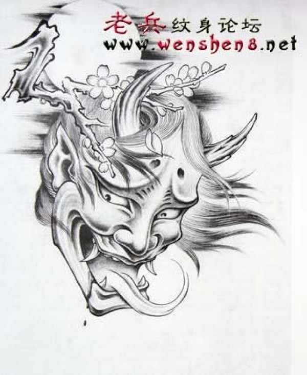 传统纹身图案日本般若樱花纹身图案_般若纹身图案大全_纹身图吧