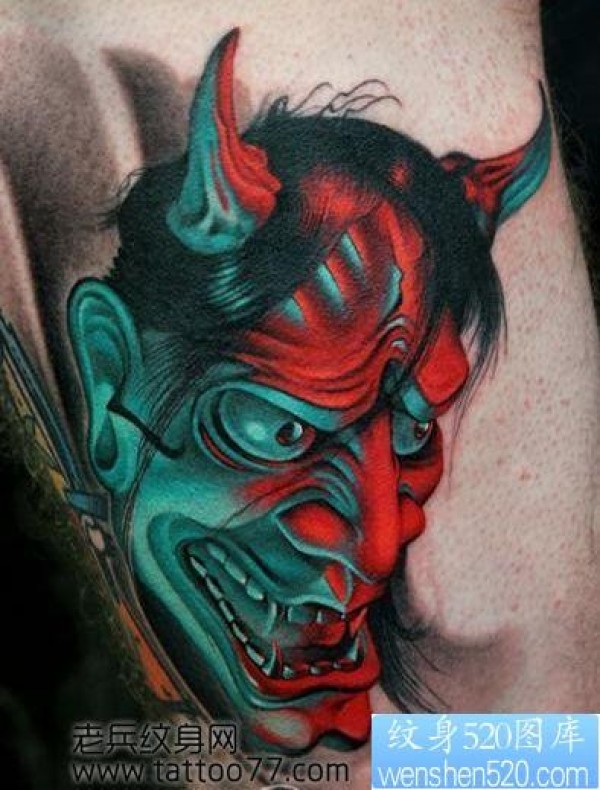腿部帅气潮流的彩色般若纹身图案_般若纹身图案大全_纹身图吧
