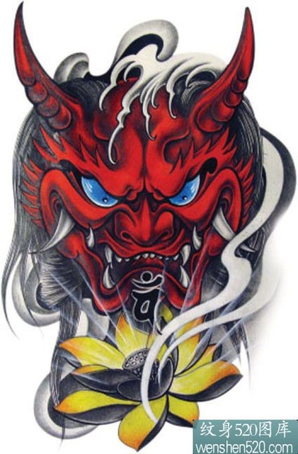 黄色莲花+红色般若纹身手稿_般若纹身图案大全_纹身图吧