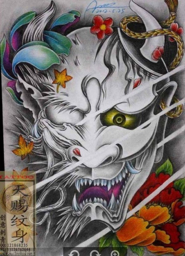 腿部帅气潮流的彩色般若纹身图案_般若纹身图案大全_纹身图吧