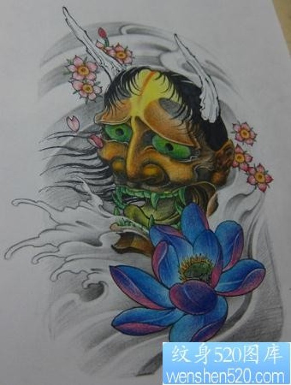 般若纹身图片彩色般若莲花樱花纹身图案_般若纹身图案大全_纹身图吧