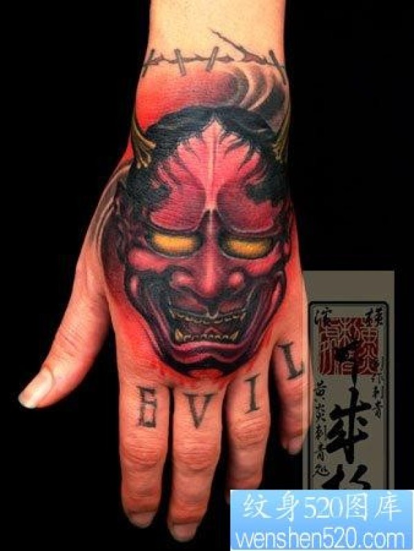 手背彩色日本般若纹身图案_般若纹身图案大全_纹身图吧