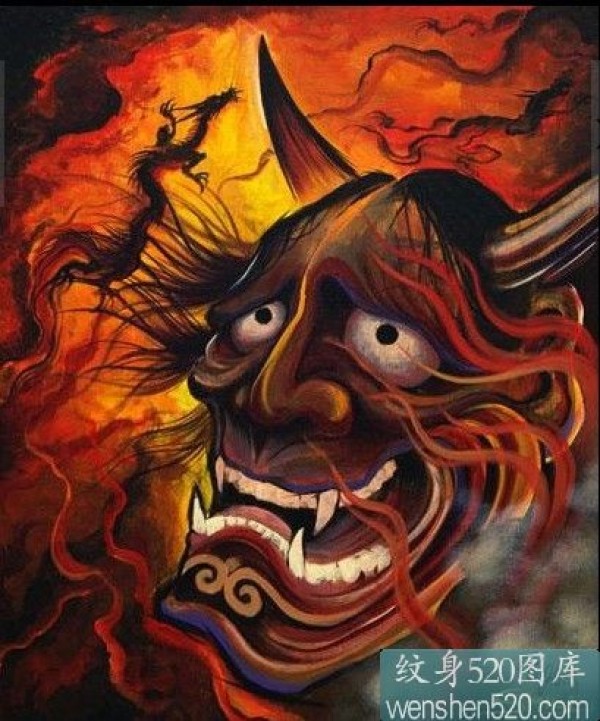 日本火红般若纹身手稿_般若纹身图案大全_纹身图吧
