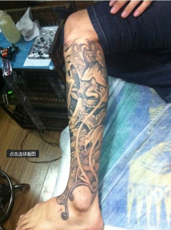 男人腿部时尚霸气的一款般若纹身图案_般若纹身图案大全_纹身图吧