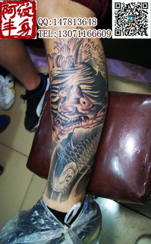 小腿纹身图,般若加鲤鱼组合纹身图案小腿上素_般若纹身图案大全_纹身图吧