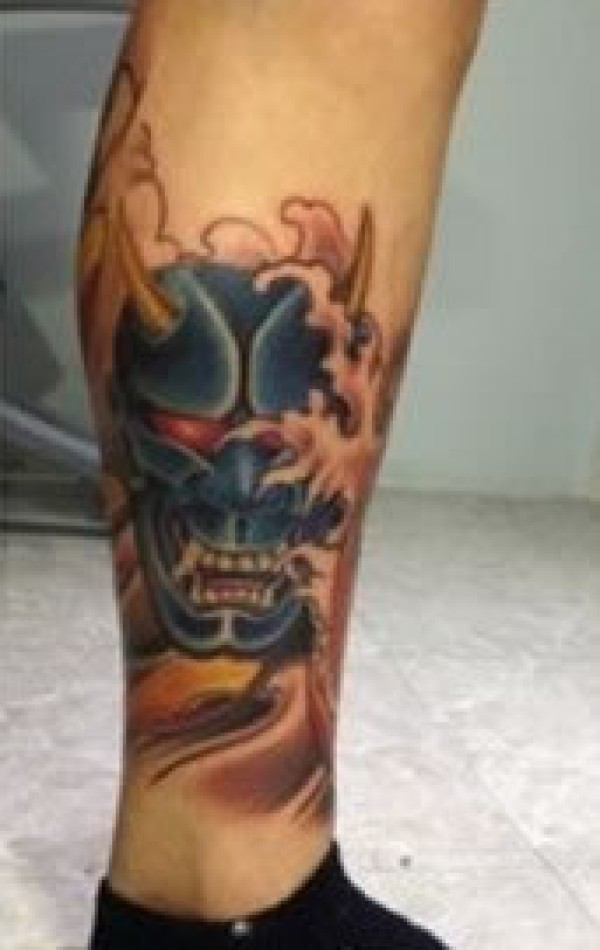 腿部帅气潮流的彩色般若纹身图案_般若纹身图案大全_纹身图吧