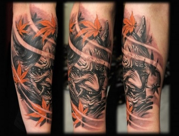 腿部帅气潮流的彩色般若纹身图案_般若纹身图案大全_纹身图吧