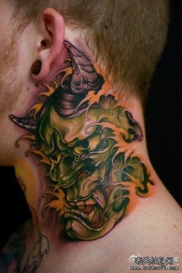 老外脖子处凶悍的般若纹身图案_般若纹身图案大全_纹身图吧
