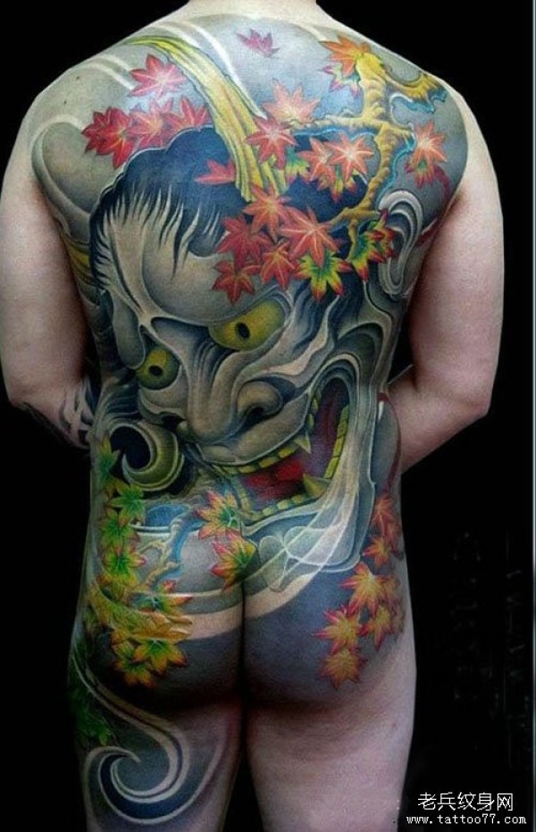 男人后肩背超酷的盔甲般若纹身图案_般若纹身图案大全_纹身图吧