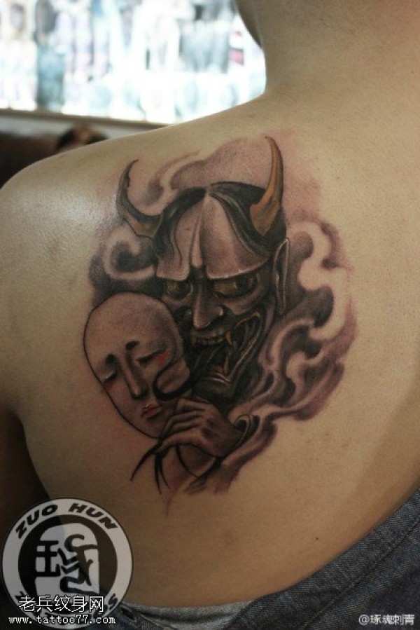 肩部般若面具纹身图案_般若纹身图案大全_纹身图吧