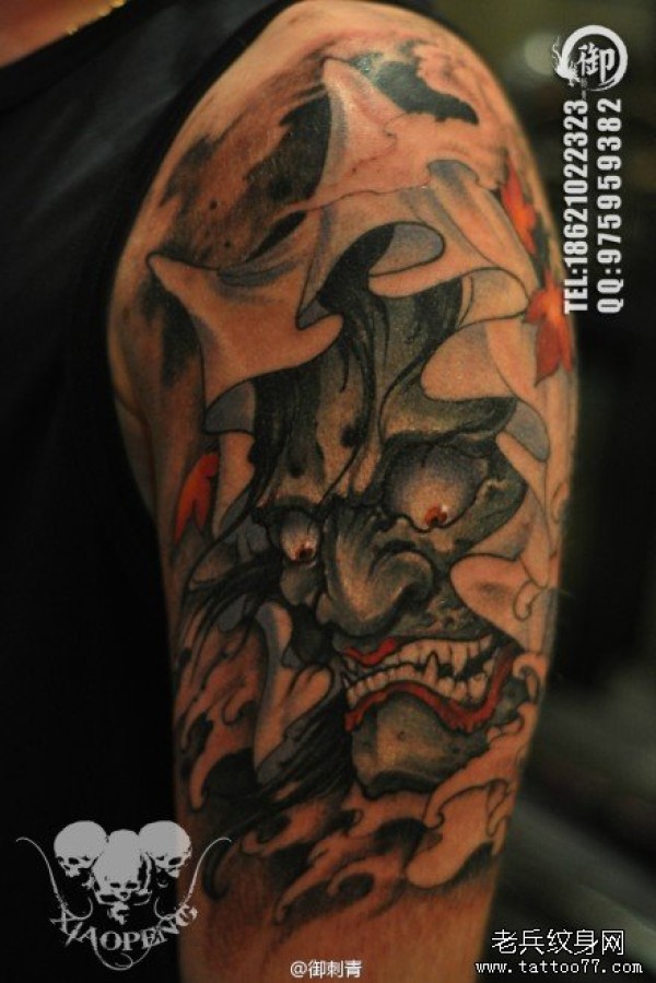 男人后肩背超酷的盔甲般若纹身图案_般若纹身图案大全_纹身图吧