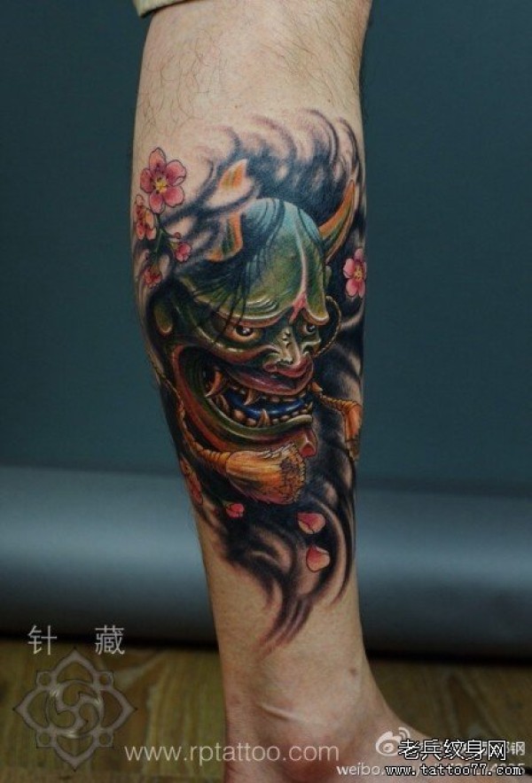 腿部帅气潮流的彩色般若纹身图案_般若纹身图案大全_纹身图吧