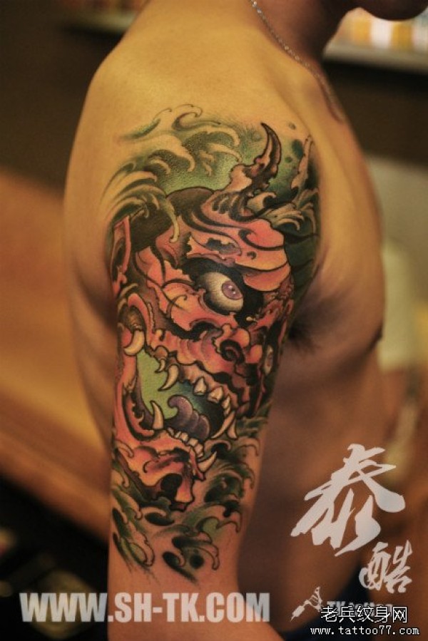手臂时尚很酷的一款彩色般若纹身图案_般若纹身图案大全_纹身图吧