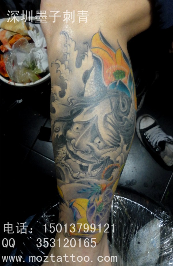 男人腿部时尚霸气的一款般若纹身图案_般若纹身图案大全_纹身图吧