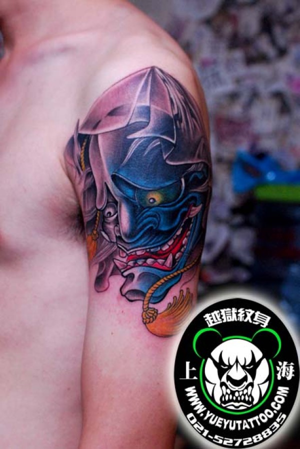 手臂彩色般若纹身图案上海越狱纹身店作品_般若纹身图案大全_纹身图吧