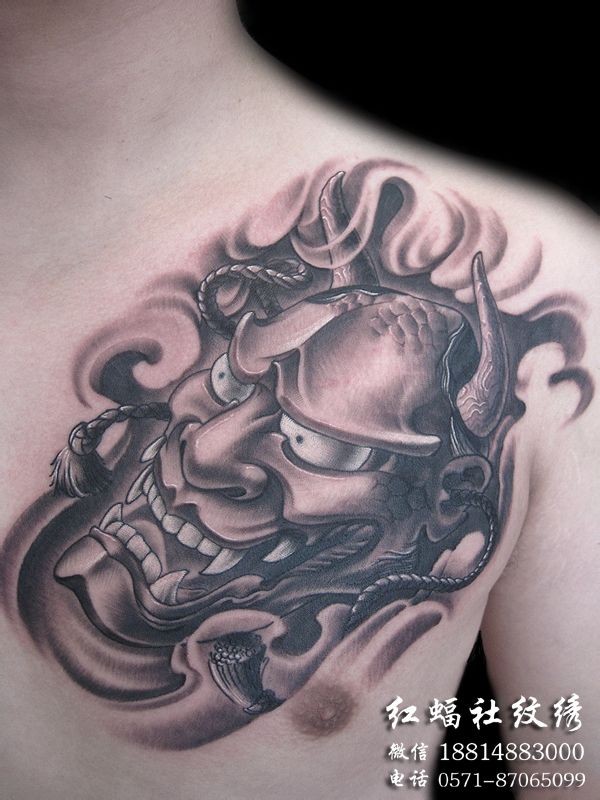 男人胸口一款潮流时尚的般若纹身图案_般若纹身图案大全_纹身图吧