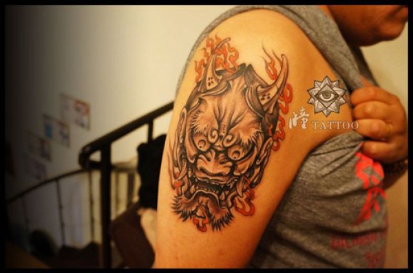 手臂时尚帅气的黑灰般若纹身图案_般若纹身图案大全_纹身图吧
