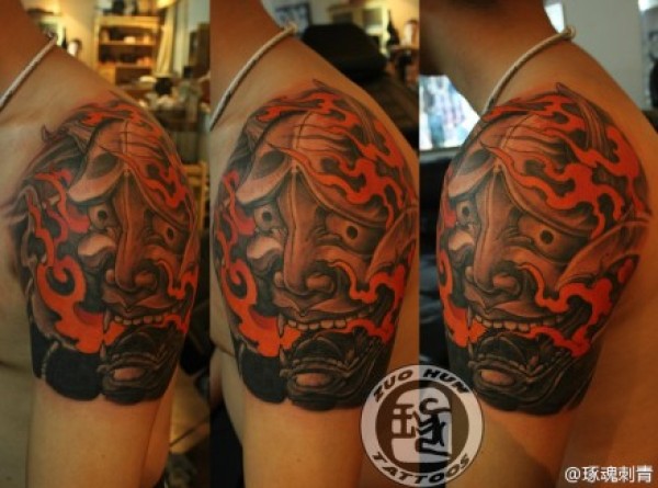 男人后肩背超酷的盔甲般若纹身图案_般若纹身图案大全_纹身图吧