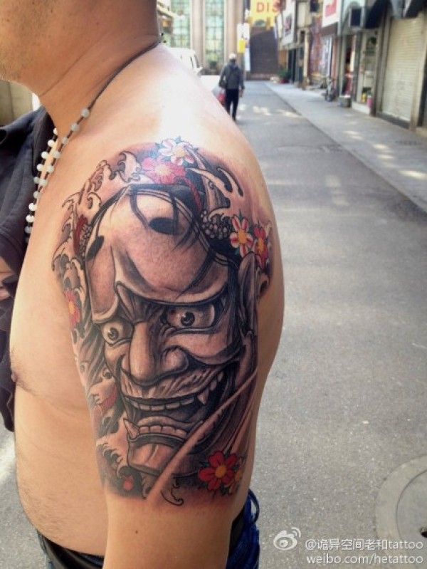 男人后肩背超酷的盔甲般若纹身图案_般若纹身图案大全_纹身图吧