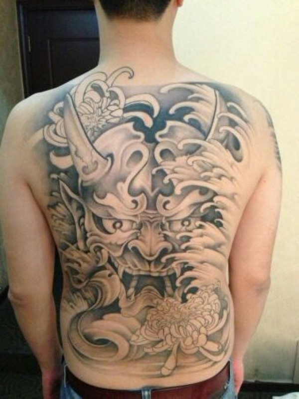 男生后背帅气经典的满背黑灰般若纹身图案_般若纹身图案大全_纹身图吧