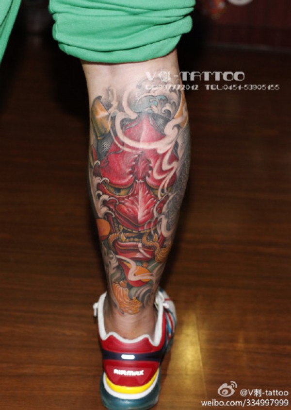 男人腿部时尚霸气的一款般若纹身图案_般若纹身图案大全_纹身图吧