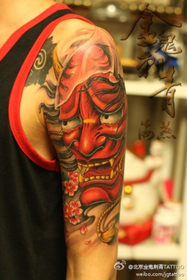 男人后肩背超酷的盔甲般若纹身图案_般若纹身图案大全_纹身图吧