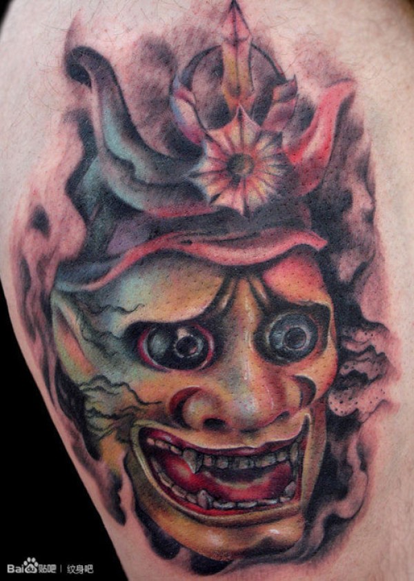 腿部帅气潮流的彩色般若纹身图案_般若纹身图案大全_纹身图吧
