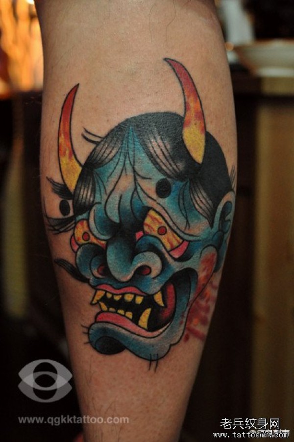 腿部帅气潮流的彩色般若纹身图案_般若纹身图案大全_纹身图吧