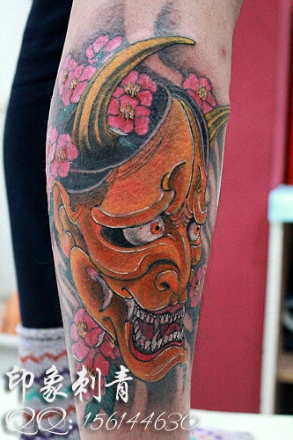 男人腿部帅气时尚的般若纹身图案_般若纹身图案大全_纹身图吧