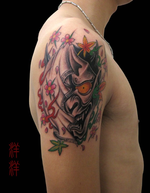 男人后肩背超酷的盔甲般若纹身图案_般若纹身图案大全_纹身图吧