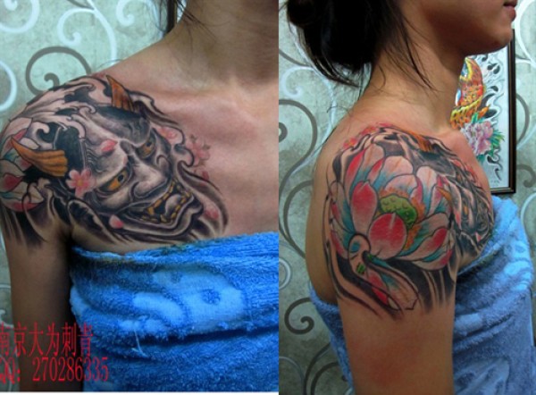 女生的半胛般若与莲花纹身图案_般若纹身图案大全_纹身图吧