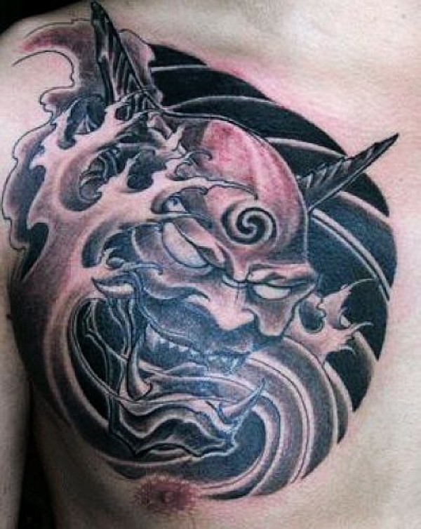 男人后肩背时尚经典的黑灰般若纹身图案_般若纹身图案大全_纹身图吧