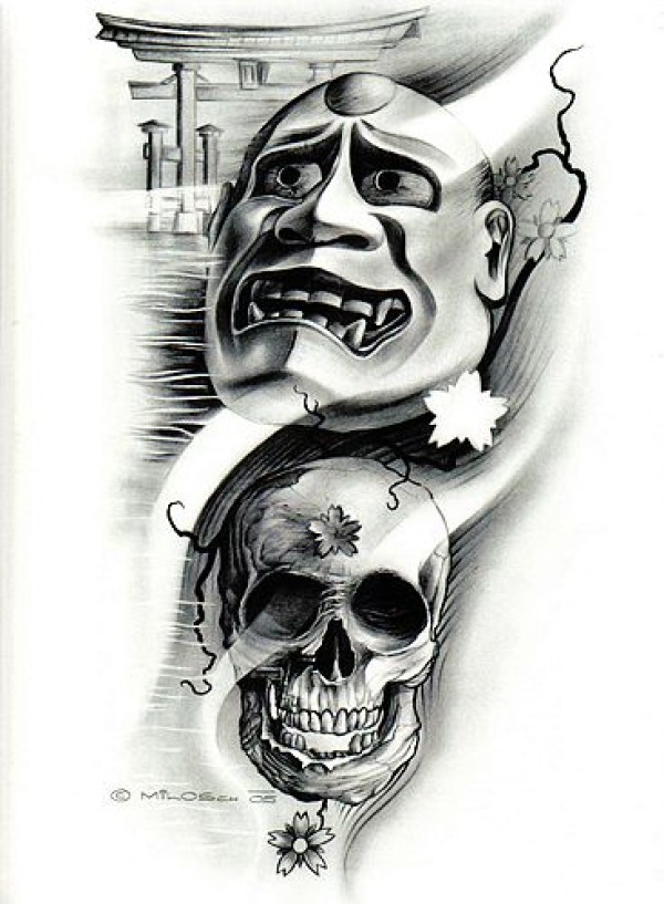 武汉老兵纹身店超酷的一款黑白般若骷髅纹身_般若纹身图案大全_纹身图吧