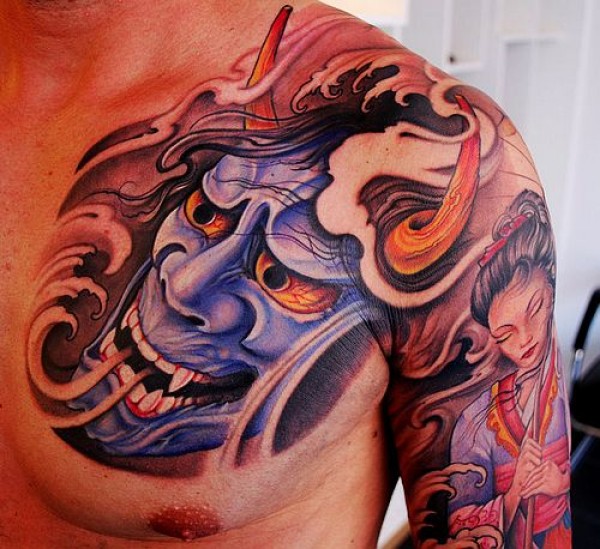 男人后肩背超酷的盔甲般若纹身图案_般若纹身图案大全_纹身图吧