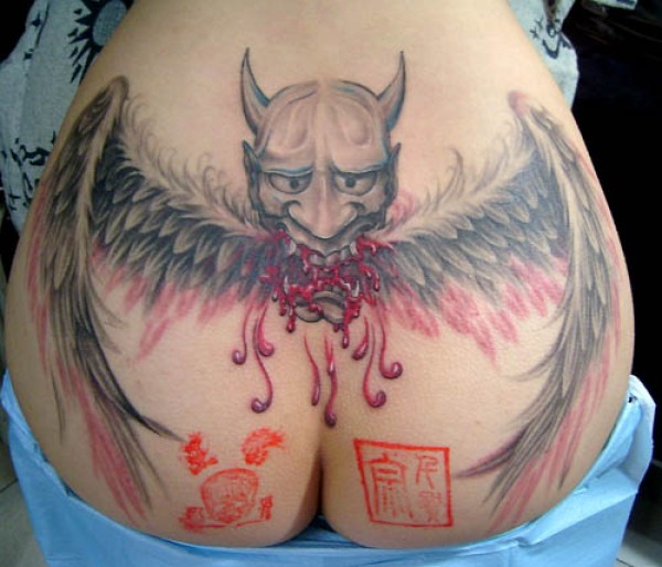 湖北黄石纹身店后腰般若翅膀纹身图案图片_般若纹身图案大全_纹身图吧