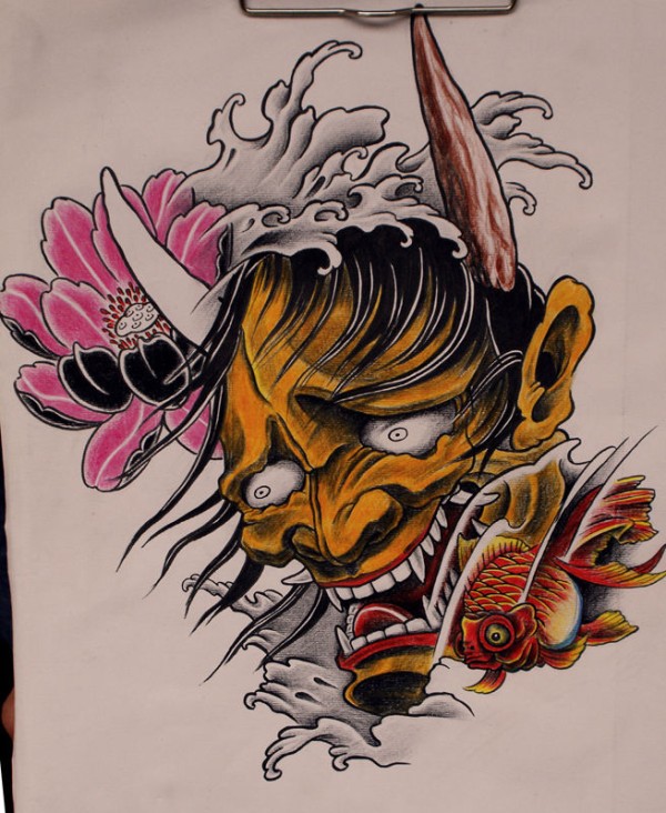 手臂一款经典很酷的欧美彩色般若纹身图案_般若纹身图案大全_纹身图吧