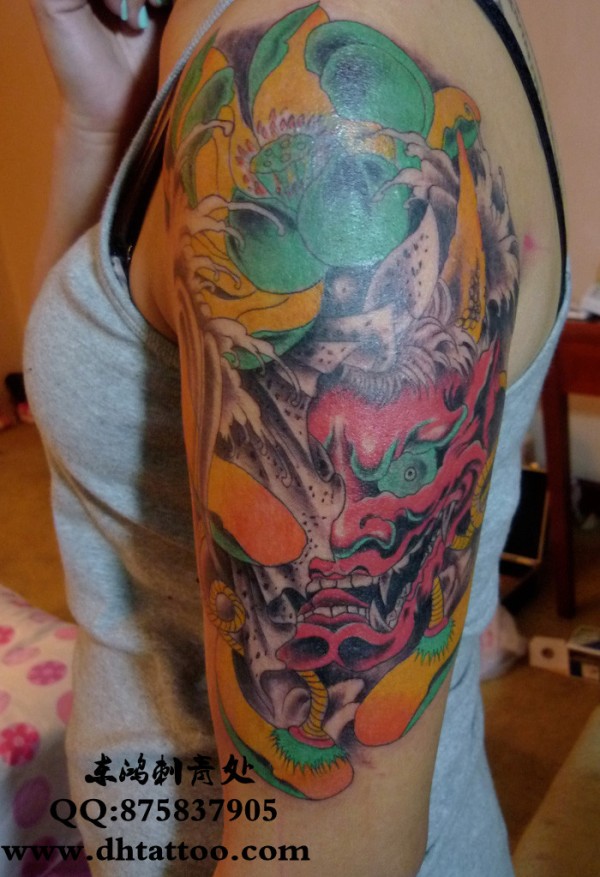 手臂一款经典很酷的欧美彩色般若纹身图案_般若纹身图案大全_纹身图吧