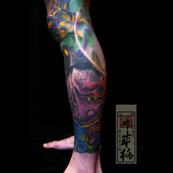 腿部帅气潮流的彩色般若纹身图案_般若纹身图案大全_纹身图吧