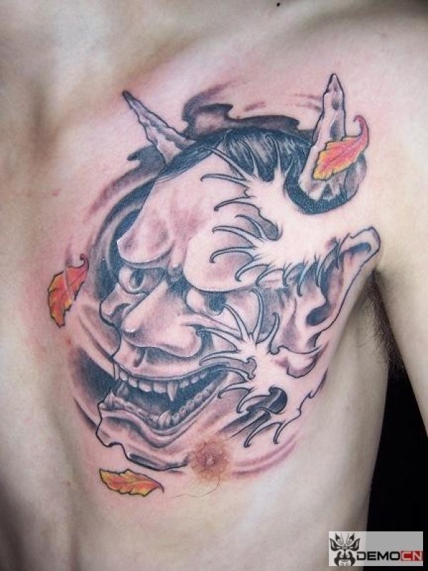 胸口浪花般若纹身_般若纹身图案大全_纹身图吧